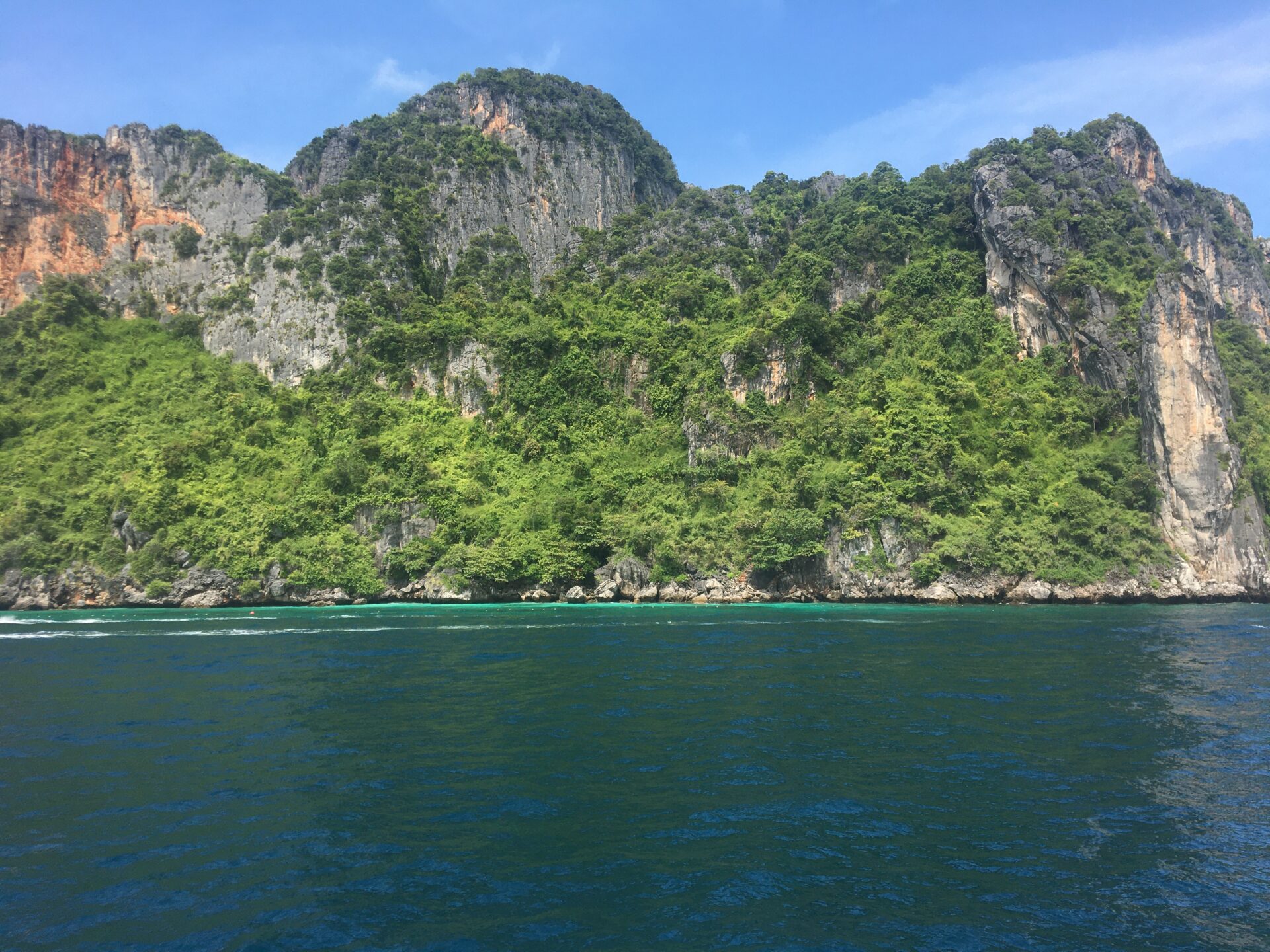 Ondanks dat we pas om 4.30 terug waren, moesten we wel om 8.00 klaarstaan omdat we dan opgehaald werden voor onze boot naar Koh Phi Phi. Met wat moeite kregen we dat voor elkaar. Om 9.00 vertrok de boot en de boottocht was tot mijn verbazing een keer heel rustig. De boot vaarde eerst nog langs Koh Phi Phi Leh, wat het kleine onbewoonde eiland van de Phi Phi eilanden is. Zo hadden we daar alles al gezien en hoefden we er geen boottrip naartoe te doen, dat was even mooi meegenomen.