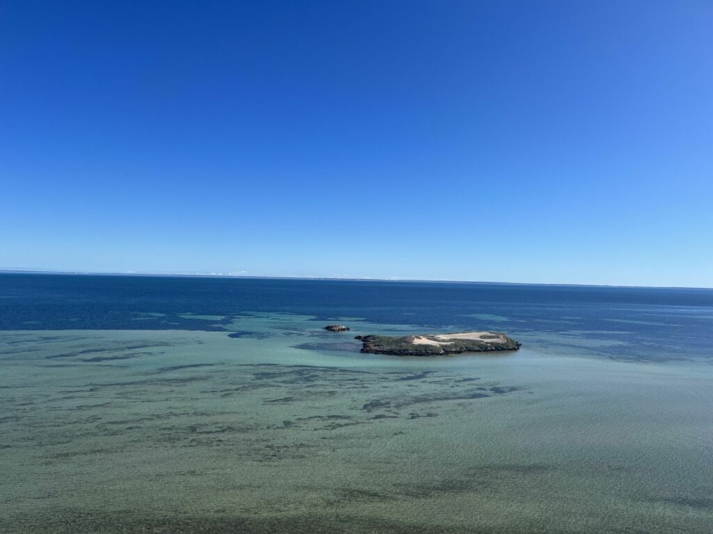 Na hier wat rondgelopen te hebben reden we verder richting onze volgende camping. We stopten onderweg nog bij Whalebone Beach. Dit is een uitzichtpunt op een heel mooi strand. Van dat strand hebben wij door het hoge water niet zoveel kunnen zien (zie foto 1 hieronder). Ook stopten we nog bij Eagle Bluff. Hier kun je een korte wandeling doen met uitzicht op de oceaan. Het water is hier helder en ondiep, waardoor je goed kunt zien wat er in het water zwemt. Ook is dit een populaire plaats om adelaars te spotten, vandaar de naam Eagle Bluff. Helaas hebben wij hier niets in het water gezien en ook geen adelaars gespot, maar het was wel een mooie plek.
