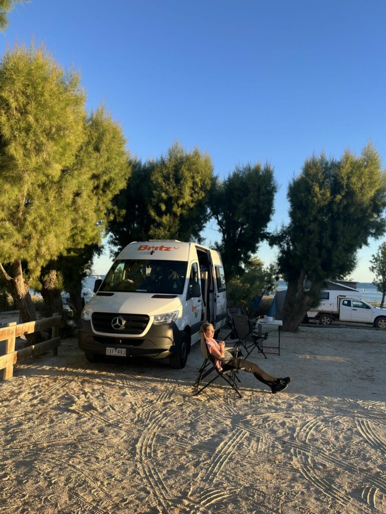 Vandaag begonnen we echt aan de West-Australië roadtrip. We haalden de camper op, wat niet zonder problemen ging. Er waren namelijk problemen met de camper, waardoor we moesten wachten totdat deze opgelost waren voordat we konden gaan rijden. Dat duurde wel even, maar uiteindelijk was de camper toch in orde en konden we, iets later dan gepland, toch op pad. De komende paar weken is deze camper ons thuis. We hebben een keukentje, een eettafel, wat opbergruimte en we slapen in een tweepersoons stapelbed. Zie hieronder wat foto’s van de camper. Het is wel krap allemaal, maar je moet er iets voor over hebben.