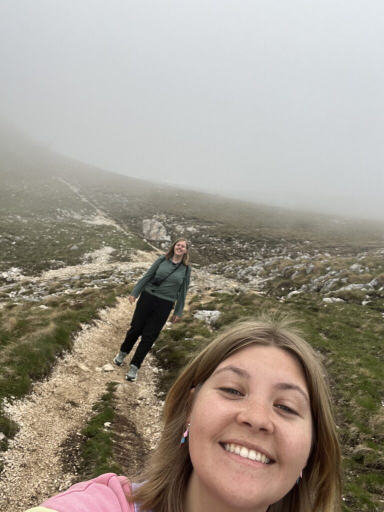 Hierna werd de wandeling wat uitdagender. We moesten namelijk van route wisselen. De wandelpaden in Durmitor nationaal park zijn niet heel goed ontwikkeld, dus het was even een uitdaging om het juiste pad te vinden. We dachten onderweg een paar keer even dat Hendrik was afgehaakt, maar hij kwam altijd weer tevoorschijn. Uiteindelijk hadden we wel het goede pad gevonden. Helaas was dit pad wel stijl omhoog lopen. We gingen namelijk niet daadwerkelijk naar het derde meer, maar we gingen naar een uitzichtpunt op dat meer. Een paar uur later bereikten we de top en dachten we het ergste gehad te hebben. Wat we alleen even niet hadden zien aankomen, is dat het gedeelte hierna een ontzettend smal pad was naast een afgrond, niet heel prettig dus.