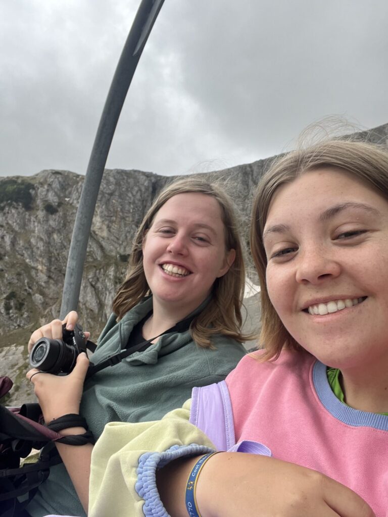 Er was ons verteld dat de tweede kabelbaan misschien niet open zou zijn vanwege het weer, maar toen we boven kwamen, bleek dat hij toch wel ging. We namen dus ook de tweede kabelbaan naar boven. Vanaf daar zou je een mooi uitzicht moeten hebben, maar wij zagen helaas alleen maar bewolking. We kunnen in ieder geval wel zeggen dat we in de wolken geweest zijn. De man van de kabelbaan zei wel dat we snel naar beneden moesten, omdat er een storm aan kwam. Het uitzicht vanaf het midden station was een stuk beter en nadat we wat foto’s gemaakt hadden, gingen we weer naar beneden.