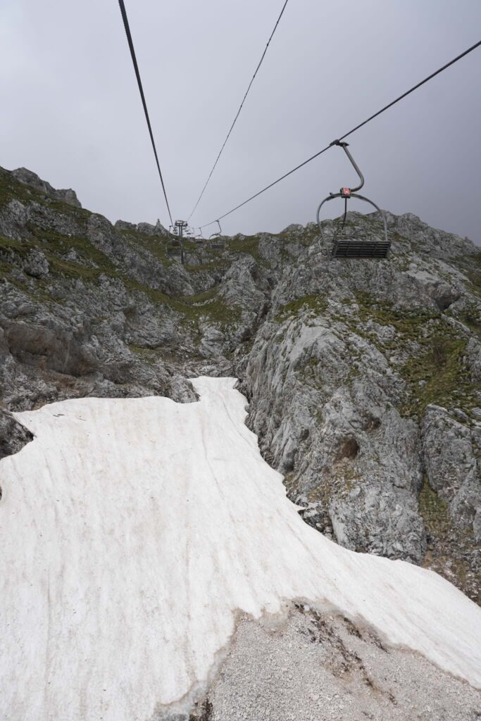 We gingen vandaag het niet-betaalde deel van Durmitor nationaal park in. Onze eerste stop was een kabelbaan. Dit was zo’n twintig minuten fietsen. De man van het hostel had gezegd dat dit grotendeels vlak was. Zijn definitie van vlak bleek iets anders dan die van ons, want de weg was toch echt grotendeels omhoog. De route was ook niet echt mooi, dus dat was een beetje jammer. Na twintig minuten kwamen we inderdaad bij de kabelbaan aan. Het was zo’n ouderwetse stoeltjeslift, wat wel een grappige ervaring was.
