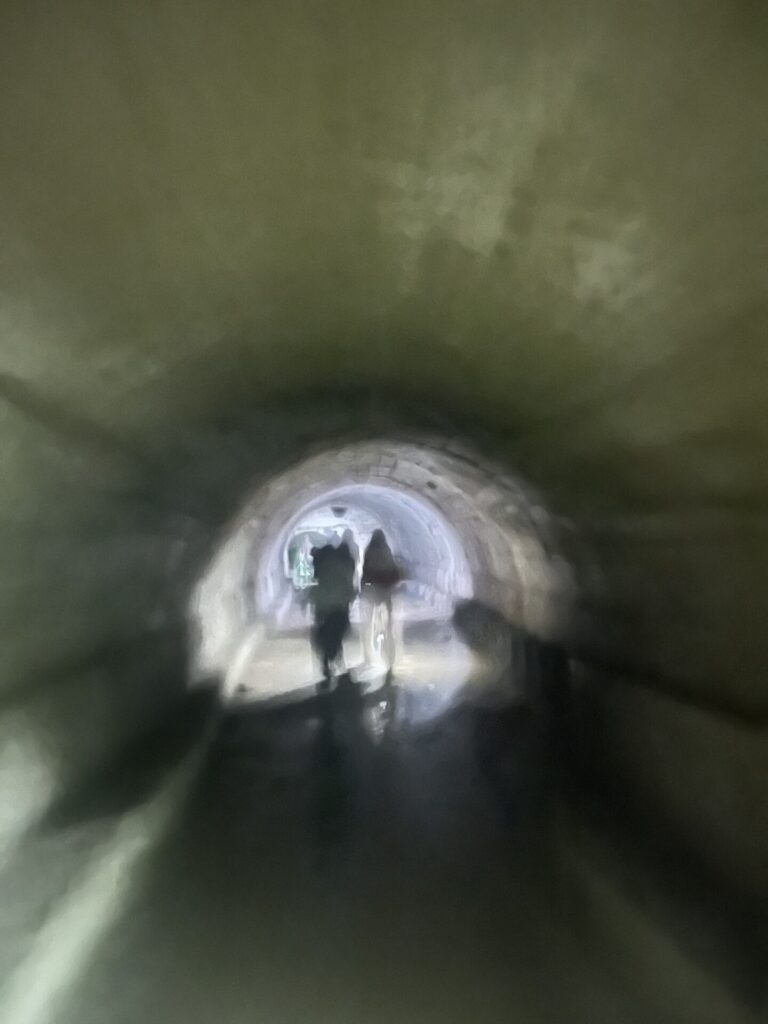 Op onze tweede avond gaf de eigenaar van het hostel een gratis stadsrondleiding. Hier kregen we een ander beeld van het stadje te zien. We liepen naar een uitzichtpunt, door een verlaten tunnel en kregen veel informatie over Gjirokastër.