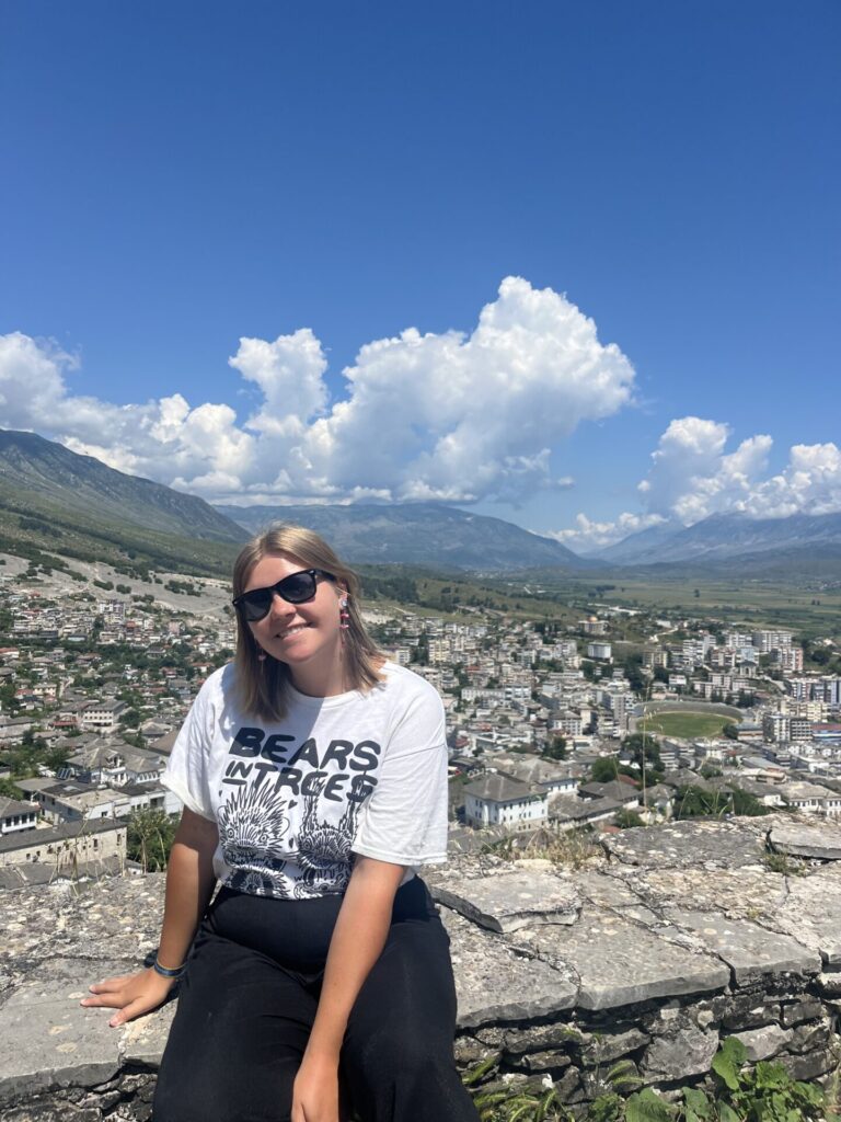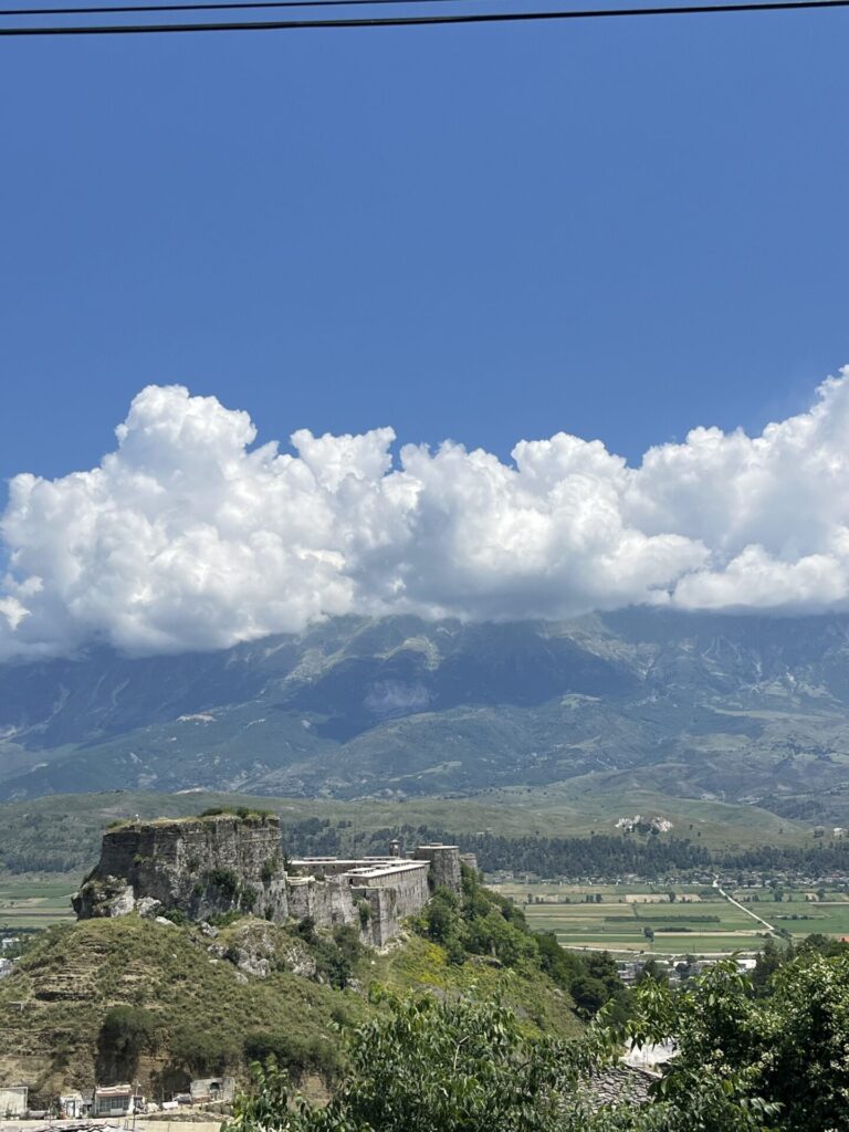 Vier dagen strand en nietsdoen had ons goed gedaan, maar nu waren we wel weer klaar om wat bezienswaardigheden te zien. Daarom reisden we verder naar Gjirokastër, een dorpje in het binnenland van Albanië. Dit staat bekend om het mooie oude centrum, het kasteel en een oude brug. Ik vond Gjirokastër een ontzettend leuke plek en het is zelfs een van mijn favoriete plekken in Albanië.