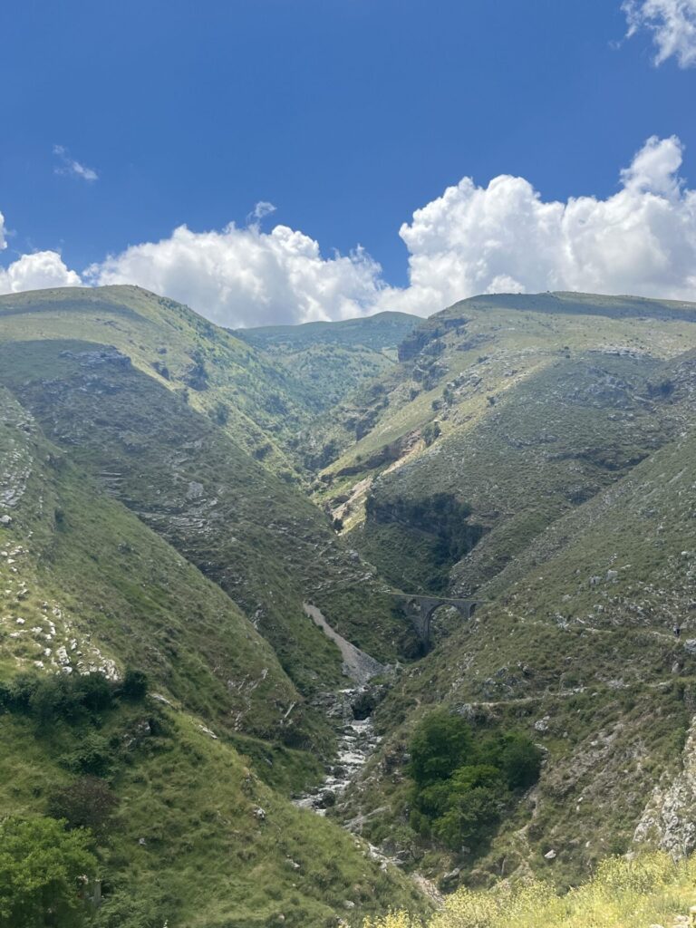Na het kasteel liepen we verder door richting de Ali Pasha brug. Dit was even een zoektocht naar waar het pad precies liep, maar het kwam allemaal gelukkig goed. Het pad was goed te doen en we waren er eigenlijk zo. De brug is leuk om te zien en doordat er geen water in de rivier stond, kon je goede foto’s maken vanaf waar de rivier eigenlijk zou moeten zijn. We raakten hier nog in gesprek met een vrouw die uit Gjirokastër kwam maar jaren geleden naar Amerika vertrokken is. Ze vond het leuk dat we haar stad kwamen bezoeken en vertelde dat de brug een van de beste dingen is om te doen in Gjirokastër. Goede keuze dus.