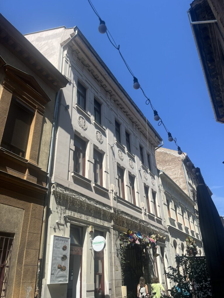 Vervolgens hebben we even pauze genomen bij een restaurant om te lunchen en te schuilen voor de regen. Nadat de regen wat minder was, zijn we via de kettingbrug, waar we gisteren ook al waren, teruggelopen naar het appartement. We moesten ons namelijk klaar maken voor onze volgende activiteit: een cocktailcruise over de Donau. Onder het genot van een aantal cocktails hebben we een zo’n twee uur over de Donau gevaren. Dit was een hele leuke ervaring. De cocktails waren top en zo zie je Boedapest weer eens vanaf een andere kant. ’s Avonds zijn we ergens pizza gaan eten en zijn we naar de meest populaire ruïne bar van Boedapest geweest. Deze is populair voor een goede reden, vind ik. Ik vind dit echt verreweg de leukste ruïnebar in Boedapest. Het is echt een doolhof, maar elke ruimte is anders en de sfeer is ontzettend gezellig.